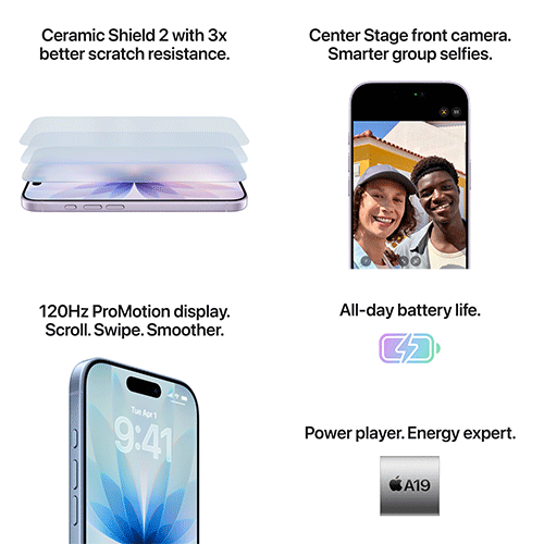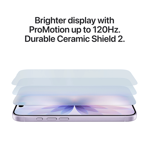 iPhone 17. More delightful. More durable. 6.3-inch ProMotion display,1 Ceramic Shield 2, all 48MP rear cameras, Center Stage front camera, A19 chip, and more.